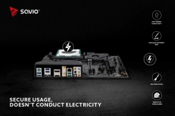 Savio TG-03 ne contient pas d’oxydes métalliques et n’est donc pas conductrice d’électricité. Cela élimine le risque de court-circuit et réduit la corrosion de la base du dissipateur ou du processeur.