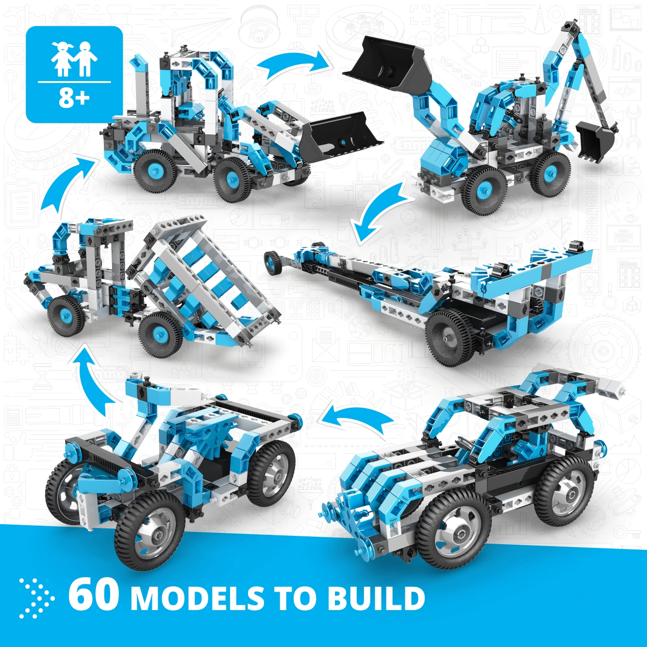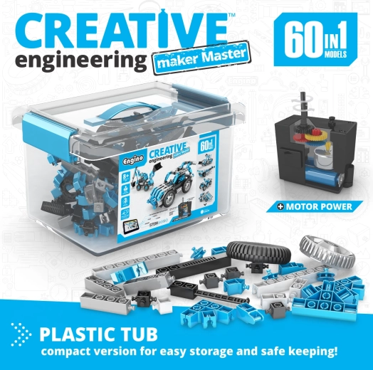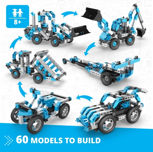 Découvrez le kit de construction créatif ENGINO Motorized Maker 60 en 1, qui développe la pensée logique, la représentation spatiale et les compétences STEM. Avec 223 pièces (l’emballage indique également 189 pièces pour les projets), vous construirez jusqu’à 60 modèles techniques – de la Formule 1 à la pelleteuse en passant par le vaisseau spatial – et grâce au moteur avec boîte de vitesses, vous leur donnerez en plus du mouvement.