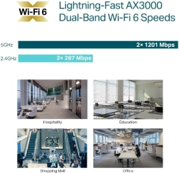 Profitez de vitesses jusqu’à 2976 Mb/s et de canaux plus larges de 160 MHz (HE160) pour un débit supérieur par appareil et un streaming fluide même en cas de forte charge réseau.