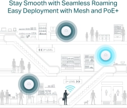 Au sein de l’écosystème Omada SDN, profitez d’une gestion centralisée dans le cloud via le Web ou l’application, de la sélection automatique des canaux et du contrôle de puissance, d’Omada Mesh pour relier les PA sans fil et d’un roaming rapide pour des appels et flux ininterrompus. Le PoE+ (802.3at) facilite l’installation là où aucune prise d’alimentation n’est disponible.