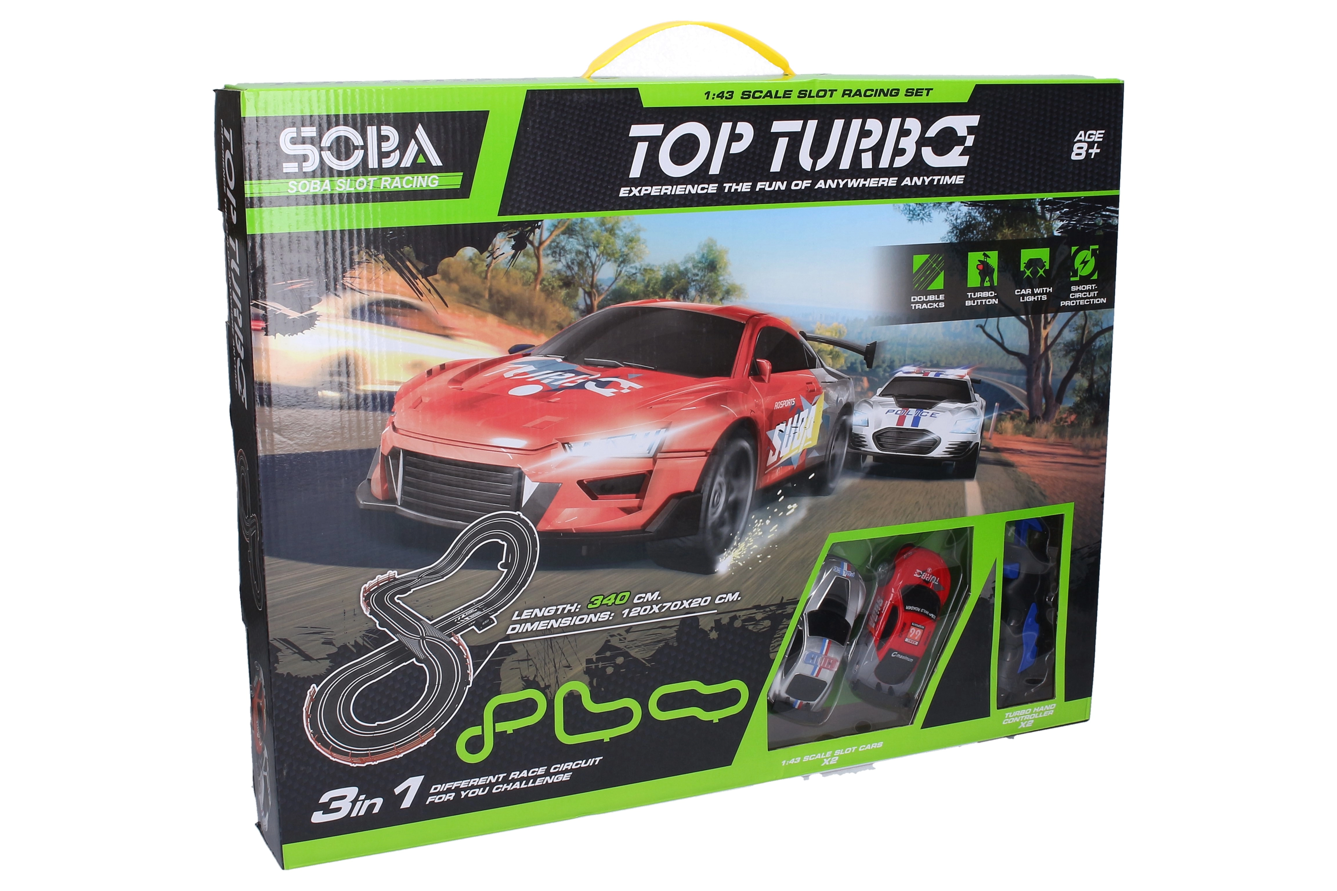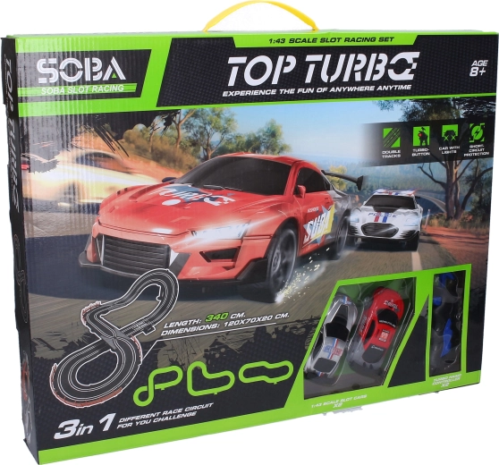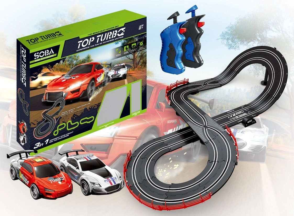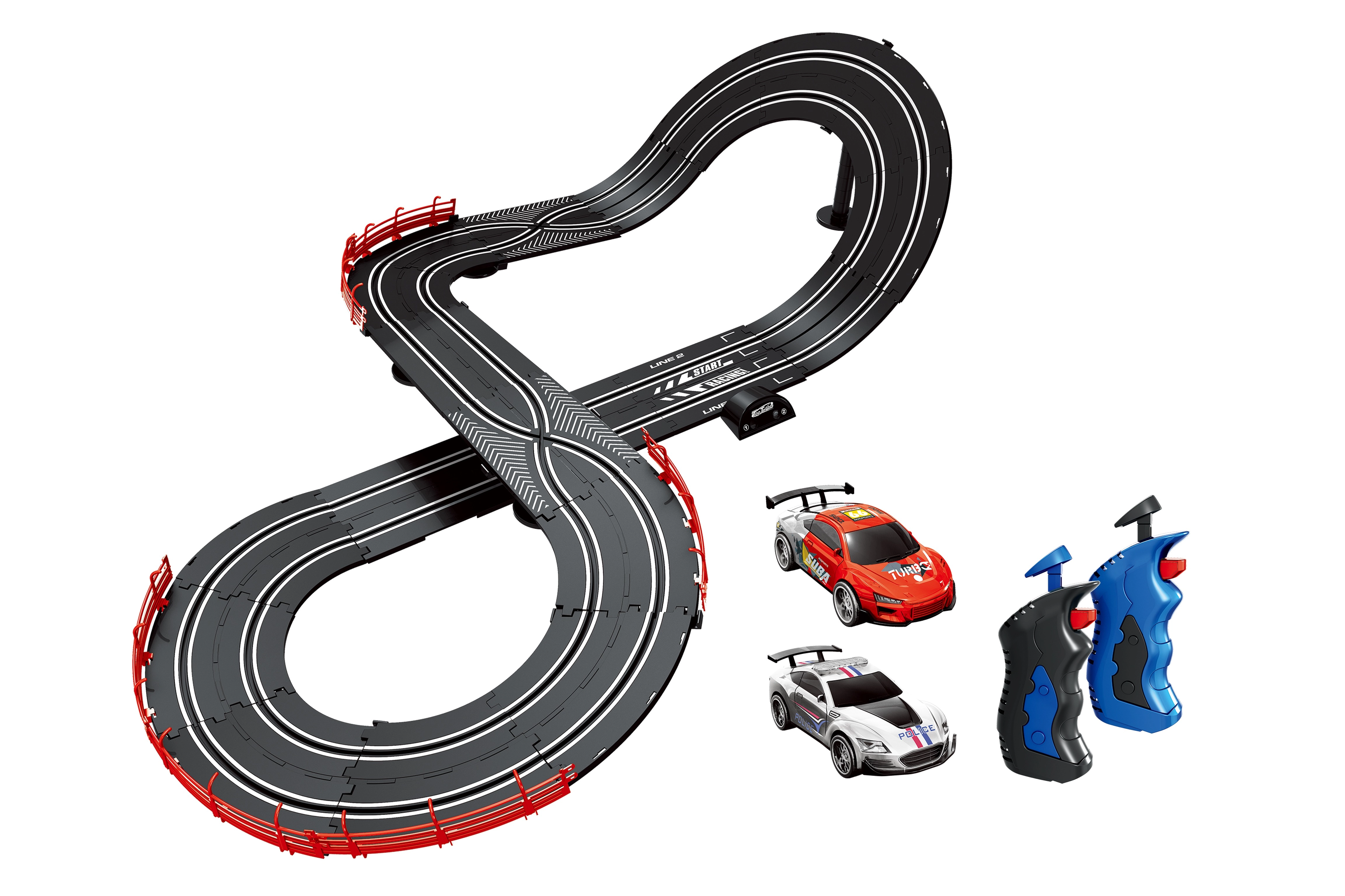 La piste peut être assemblée de 3 façons différentes, afin d’adapter facilement le plaisir de jeu. L’alimentation par adaptateur 12 V fournit une puissance constante sans piles. Parfait comme cadeau et idéal pour des courses en famille.