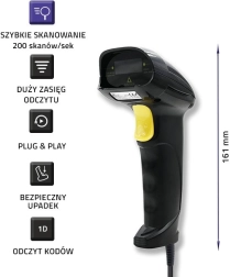 Le lecteur de codes-barres Qoltec vous permet un accès facile et efficace aux informations cachées dans les codes-barres. Il offre une numérisation rapide avec une vitesse allant jusqu'à 200 scans par seconde et une résistance aux chutes d'une hauteur allant jusqu'à 1,5 mètre.
