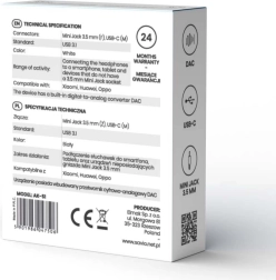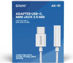 Le compact adaptateur USB‑C vers 3,5 mm de SAVIO permet de connecter des écouteurs et des enceintes classiques aux téléphones, tablettes et ordinateurs portables modernes dépourvus de prise audio. Grâce au convertisseur intégré DAC, il offre un son clair et de qualité, est compatible USB‑C et idéal pour XIAOMI, HUAWEI et OPPO.