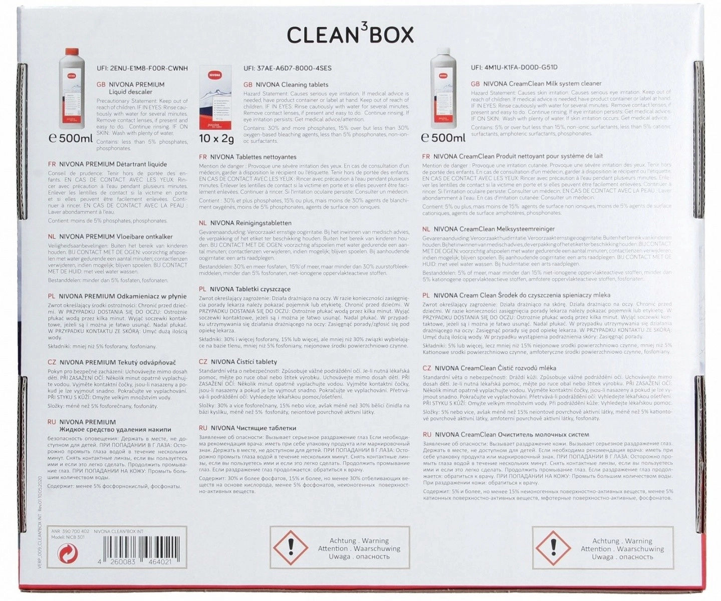 Le kit Clean3Box est la solution idéale pour maintenir votre machine à café NIVONA en parfait état. Cet ensemble comprend :
