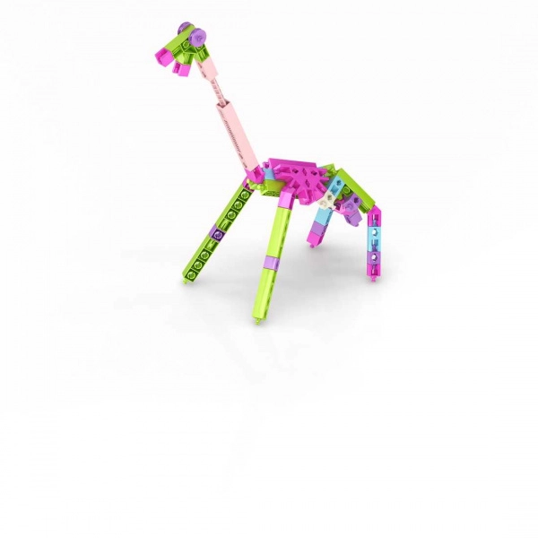 Assemblez un hélicoptère, un bateau, une balançoire, une girafe, une motoneige et bien d’autres. Des pièces polyvalentes avec des connexions à clip solides stimulent l’imagination et la patience.
