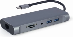 Adaptateur USB Type‑C 7‑en‑1 (hub 3.0 + HDMI + VGA + PD + lecteur de cartes + audio stéréo), gris