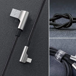 Le câble fiable AUKEY CB-AL01 de 2 m est conçu pour une utilisation confortable à l’horizontale : les connecteurs Lightning et USB‑A coudés à 90° ne dépassent pas et offrent une meilleure prise en main. La tresse en nylon de qualité premium est très résistante et flexible, ce qui réduit les pliures et empêche la formation de nœuds.