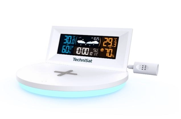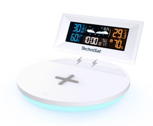 Le grand écran couleur offre l’affichage de l’heure ainsi que toutes les valeurs mesurées et fonctions importantes, avec trois modes de rétroéclairage. L’éclairage LED de la station de base peut changer de couleur, tandis que la surface de la station de base permet la charge sans fil d’appareils compatibles, comme les téléphones ou les montres connectées.