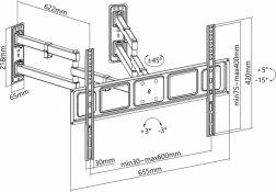 Le support AR-85 est conçu pour l'installation sécurisée de grandes télévisions avec une diagonale de 32 à 70 pouces. Il dispose d'un réglage flexible qui permet d'adapter l'angle de vision à vos besoins :
