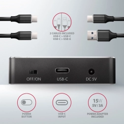 La station d’accueil de bureau AXAGON ADSA-M2C apporte une connexion simple et rapide de deux SSD NVMe (PCI-Express) M.2 à votre ordinateur. La connexion s’effectue via un connecteur réversible USB-C, avec la possibilité d’utiliser un câble standard USB-C -> USB-A ou USB-C -> USB-C, fournis dans l’emballage.