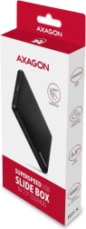 Boîtier externe léger AXAGON EE25-SL SLIDE BOX avec USB 3.2 Gen 1 (USB 3.0) et SATA 6G, destiné à tous les disques durs et SSD SATA 2,5". Grâce à sa conception sans vis, le remplacement du disque est simple et rapide.