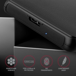 L’AXAGON EE25-SL est équipé d’une interface USB 3.2 Gen 1 offrant un débit jusqu’à 5 Gbit/s pour un transfert de données efficace. Il est compatible avec tous les HDD ou SSD 2,5" sans limite de capacité et d’une hauteur de disque jusqu’à 9,5 mm.