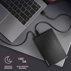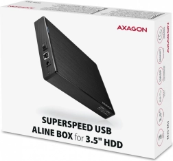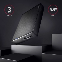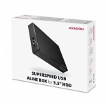 Boîtier externe compact en aluminium AXAGON avec USB 3.2 Gen 1 permettant de connecter facilement des disques durs SATA 3,5" avec vitesse maximale et protection. Design élégant offrant une excellente dissipation thermique et un montage simple.