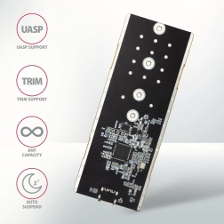 Le boîtier est doté d’ailettes et de pads thermiques qui refroidissent efficacement le SSD M.2 inséré, prolongeant ainsi sa durée de vie. Le boîtier protège le SSD sur les côtés, avec une protection contre la surchauffe qui réduit le risque de « Thermal Throttling ».