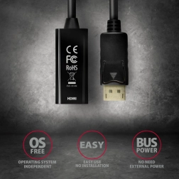 - Conversion unidirectionnelle de DisplayPort vers HDMI.
