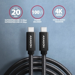Ce câble de liaison AXAGON USB‑C ↔ USB‑C est conçu pour une connexion rapide et stable. Il prend en charge un débit jusqu’à 20 Gb/s (USB 3.2 Gen 2x2) et reste rétrocompatible avec USB 3.2 Gen 2 / Gen 1 et USB 2.0. Il permet la synchronisation des données et la charge simultanées (Data Sync & Fast Charging) ainsi que la transmission vidéo jusqu’en 4K@60 Hz et audio – nécessite un port USB‑C avec DisplayPort Alt Mode ou Thunderbolt 3/4.