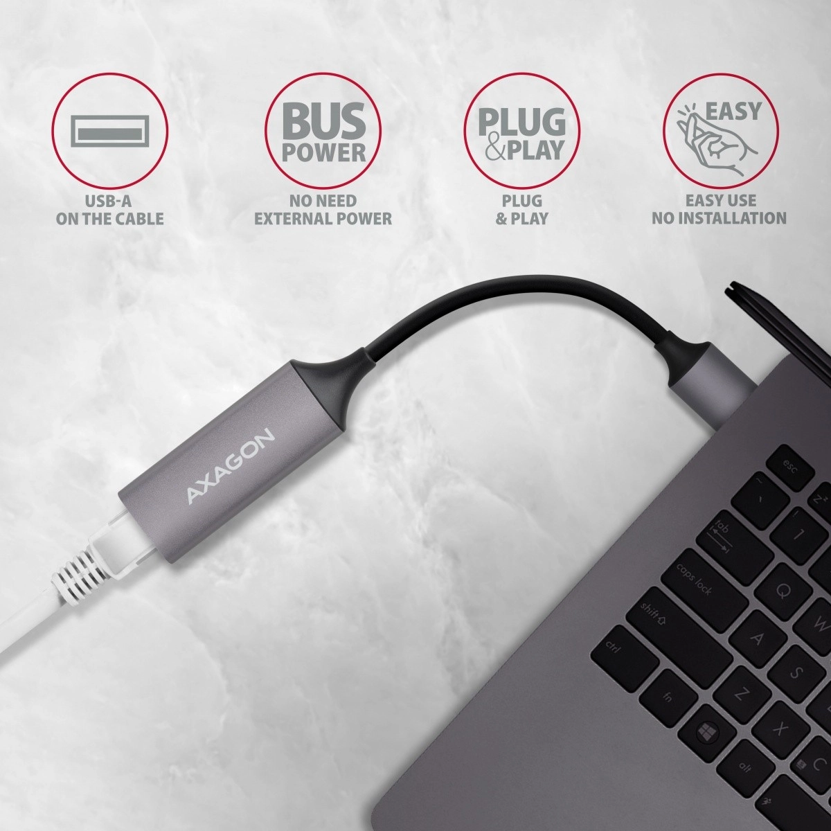 La carte réseau externe AXAGON transforme votre port USB-A 3.2 Gen 1 en un RJ-45 Gigabit Ethernet rapide. Idéale pour les ordinateurs portables et ultrabooks dépourvus de LAN, comme seconde interface réseau ou en remplacement d’un port défectueux. La construction métallique de couleur gris titane garantit une grande durabilité et un refroidissement efficace.