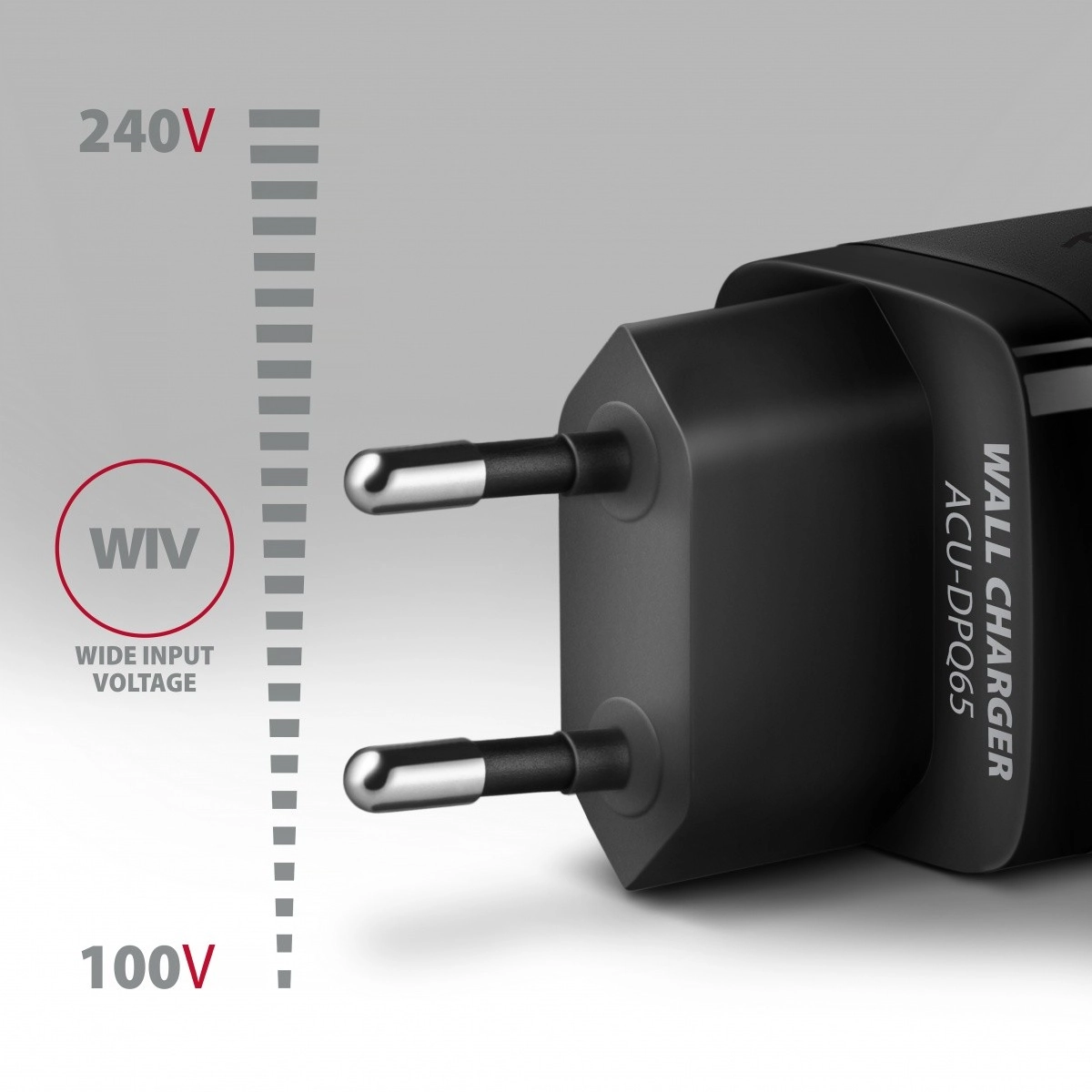 Le chargeur de voyage compact AXAGON GaN 65W recharge rapidement jusqu’à trois appareils simultanément. Grâce à la technologie GaN, il offre une haute puissance dans un boîtier réduit, deux ports USB-C avec Power Delivery 3.0/QC 4+ et un USB-A avec QC 3.0. Il prend en charge PPS, Samsung SFC/SFC 2.0 ainsi que Apple PD 20–27W et peut alimenter des ordinateurs portables jusqu’à 65W.