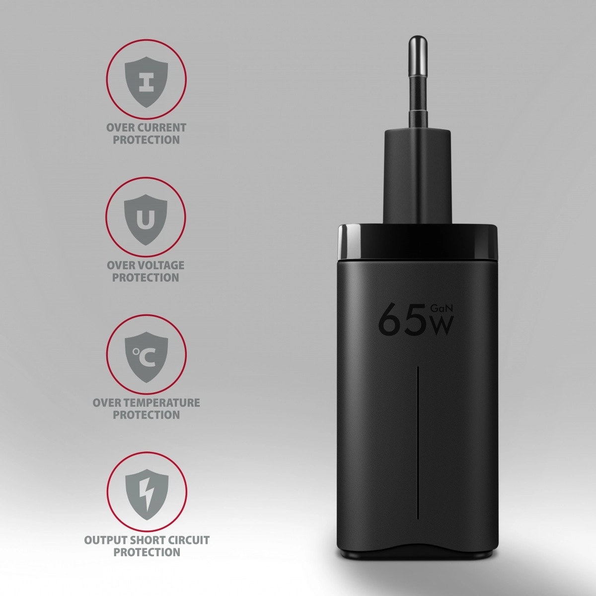 Chargeur universel d’une puissance totale de 65W, il recharge rapidement smartphones, tablettes et ordinateurs portables. Deux ports USB‑C réversibles et un USB‑A offrent des combinaisons de charge flexibles, avec répartition intelligente de la puissance. Grâce au chipset GaN, le chargeur est nettement plus compact, plus léger et plus efficace, idéal pour le voyage.