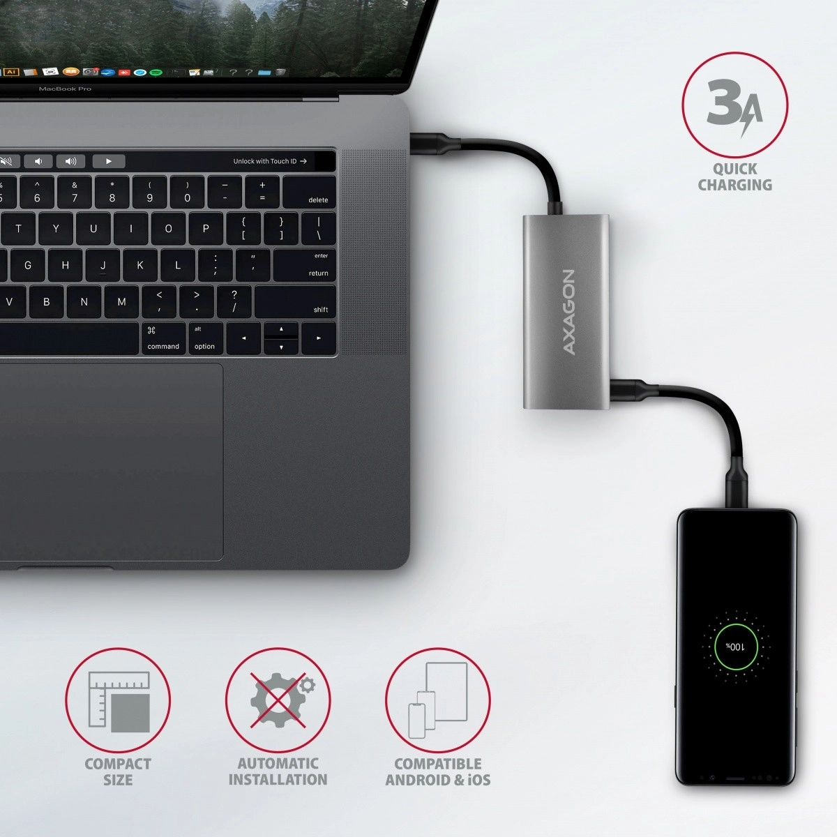 Le hub USB-C compact AXAGON étend votre ordinateur portable, PC ou téléphone avec quatre ports – 2x USB-A et 2x USB-C – via l’interface USB 3.2 Gen 2 (10 Gb/s). Il offre un transfert de données rapide, la prise en charge de plusieurs disques externes, la charge via USB-C jusqu’à 3 A et un boîtier en aluminium résistant assurant une excellente dissipation thermique.