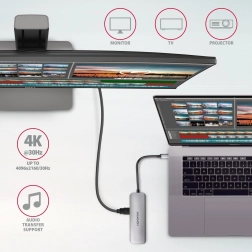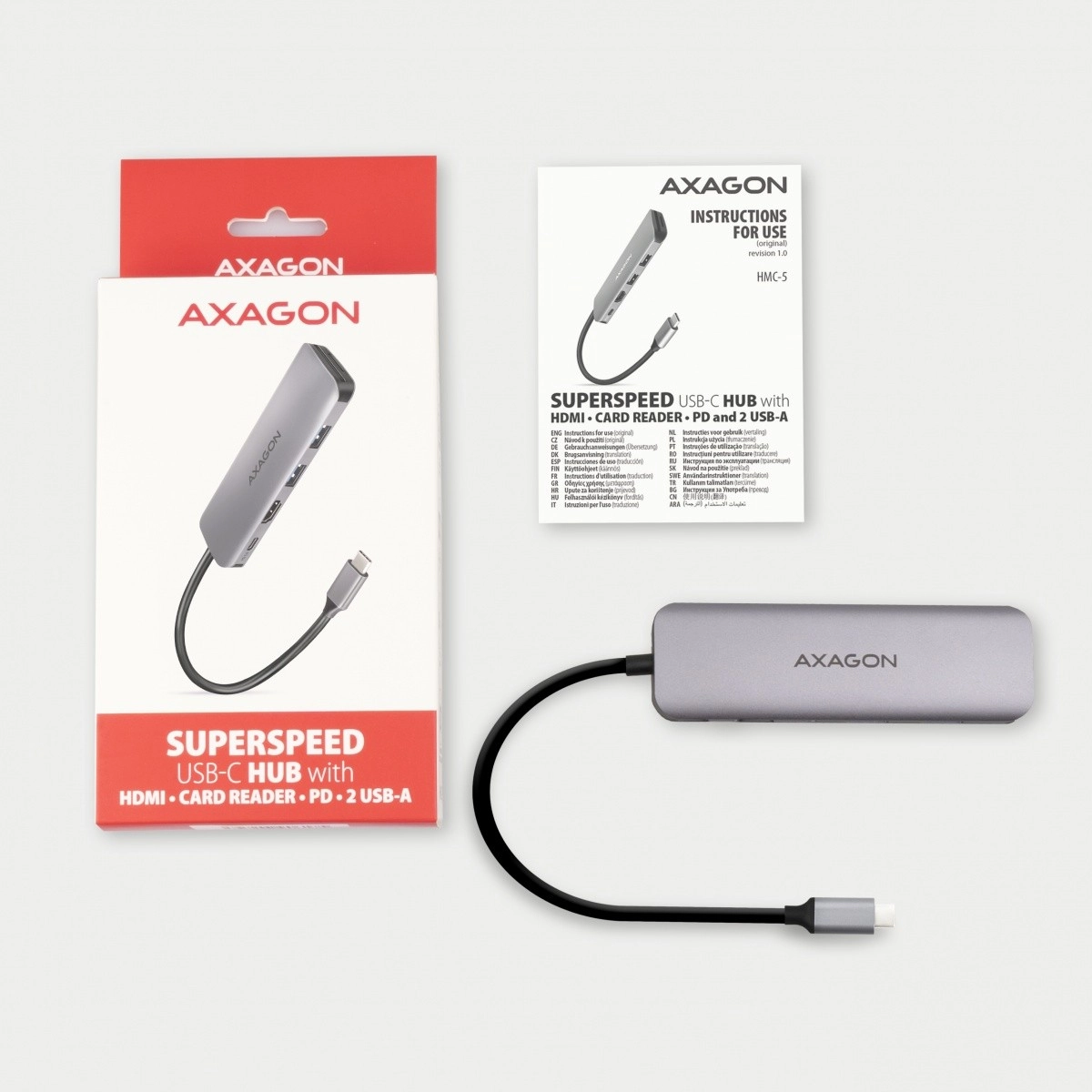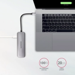 Le hub universel 5-en-1 transforme un port USB-C en de multiples possibilités. Connectez des disques externes, une souris et un clavier, lisez des cartes SD/microSD et projetez simultanément l’image via HDMI jusqu’en 4K/30 Hz. Grâce au Power Delivery via USB-C, alimentez facilement un ordinateur portable jusqu’à 100 W – vous économisez ainsi un port et un câble.