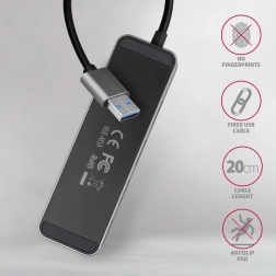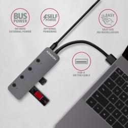 Axagon HUE-MSA hub USB en métal 4× USB 3.2 Gen 1 avec interrupteurs, câble 20 cm
