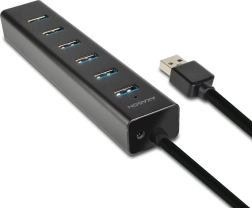 Étendez la connectivité de votre ordinateur avec l’élégant hub AXAGON en aluminium doté de sept ports USB. La prise en charge de l’USB 3.2 Gen 1 (5 Gb/s) garantit un transfert rapide des données, tandis que USB Battery Charging 1.2 permet de recharger téléphones, tablettes et batteries externes avec un courant allant jusqu’à 2 A sur n’importe quel port. Grâce aux espacements généreux entre les ports, vous connecterez facilement des appareils plus encombrants.