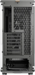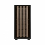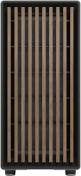 La façade ouverte avec lamelles verticales en bois et un fin maillage combine esthétique et haute efficacité de refroidissement – idéale pour des configurations silencieuses comme performantes.