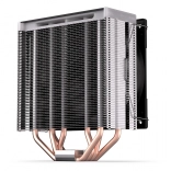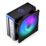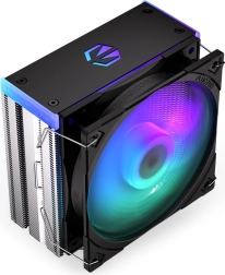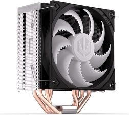 Endorfy Fera 5 ARGB est un refroidisseur à air compact qui gère les processeurs modernes tout en se distinguant par un fonctionnement exceptionnellement silencieux. Le flux d’air est assuré par le ventilateur primé Fluctus 120 PWM ARGB avec pales optimisées et mode semi‑passif optionnel. Les ailettes denses et quatre caloducs en cuivre dissipent efficacement la chaleur, même lors de longues sessions, de jeu ou de rendu.