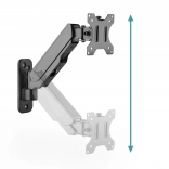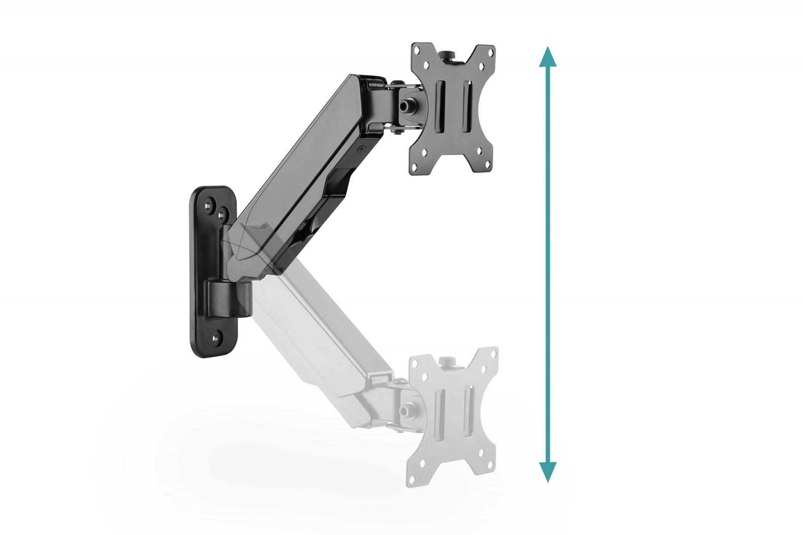 Optimisez l’espace et améliorez l’ergonomie avec un bras mural fiable pour moniteurs plats et incurvés. Le vérin à gaz intégré assure un réglage de hauteur fluide et léger jusqu’à 28 cm, pour adapter facilement l’écran à votre taille et à votre posture.