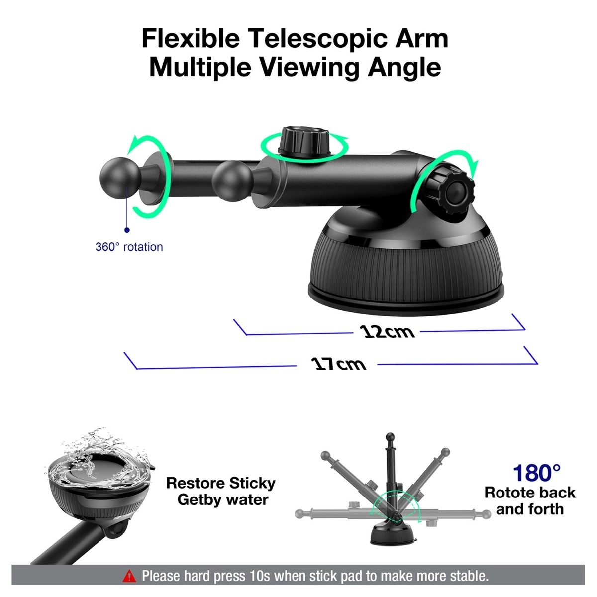 L’installation est simple et universelle : choisissez la ventouse pour pare-brise ou tableau de bord, ou le clip pour grille d’aération. Les rotules autorisent une rotation à 360° pour un angle de vue parfait lors de la navigation et des appels mains libres. Le condensateur intégré conserve la fonction d’ouverture des bras même après la coupure d’alimentation, afin de retirer le téléphone sans stress en cas de panne de courant.