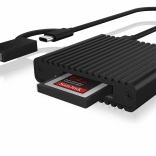 La construction robuste en aluminium avec de larges ailettes dissipe efficacement la chaleur, prolonge la durée de vie de l’appareil et des cartes mémoire, et maintient des performances stables lors de transferts prolongés. Un câble combiné USB‑C et USB‑A est fourni, vous permettant de connecter facilement le lecteur aux ordinateurs portables modernes comme aux machines plus anciennes. Le Plug & Play sans installation de pilotes et la large compatibilité avec Windows, macOS et ChromeOS vont de soi.