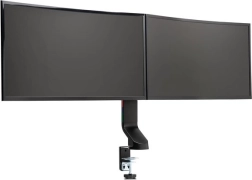 Le support double moniteur est parfait pour les environnements domestiques et de bureau. La conception unique du bras permet un réglage facile même sur des bureaux étroits, garantissant des conditions de travail ergonomiques.