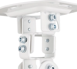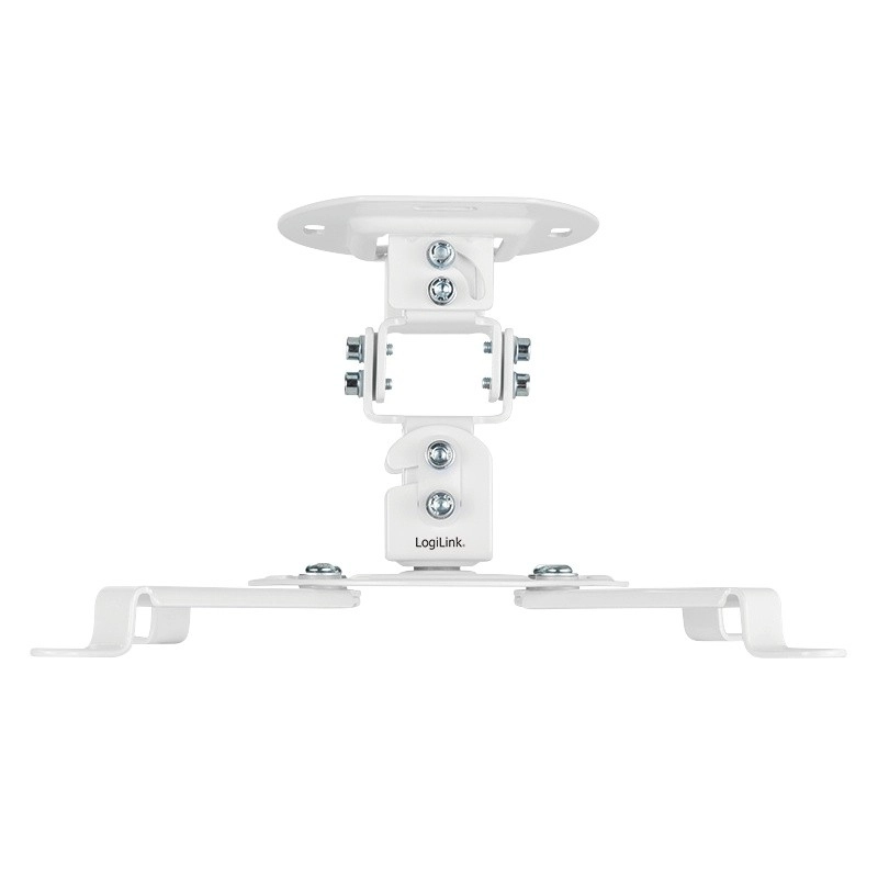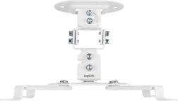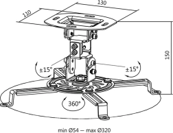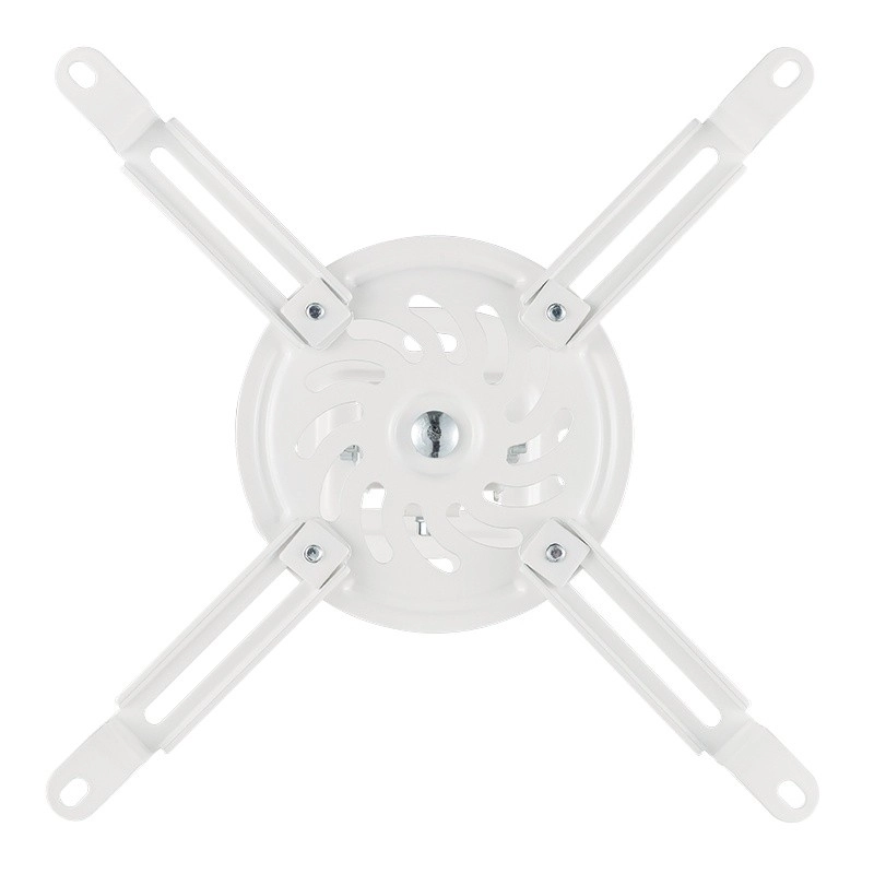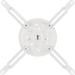 Support plafond pour projecteur universel blanc avec réglages précis offrant une rotation à 360°, une inclinaison ±15° et des bras réglables 54–320 mm. Grâce à sa construction métallique robuste et à ses multiples points de fixation, il garantit une installation sûre pour le home cinéma comme pour le bureau.