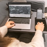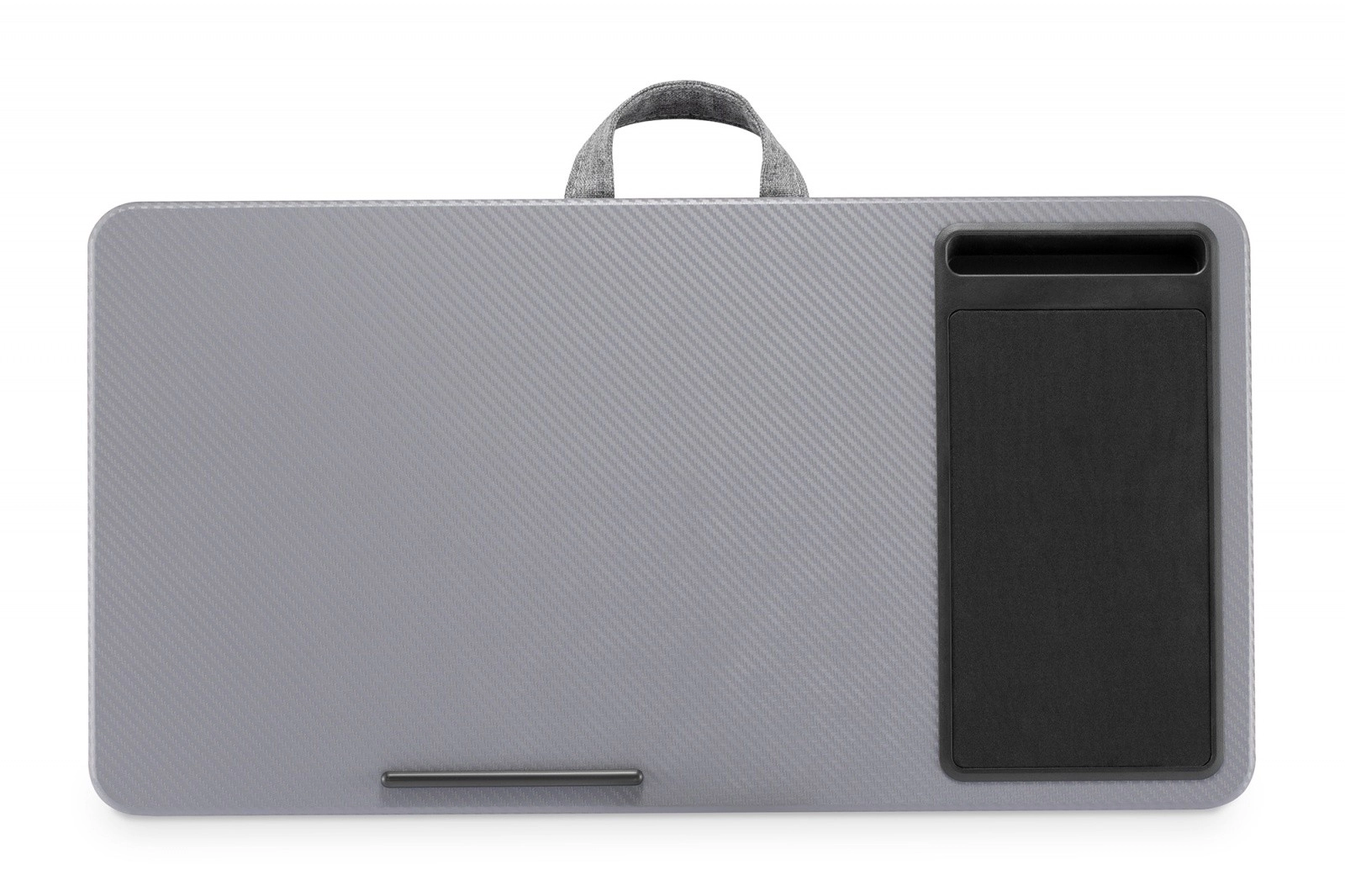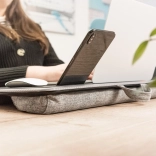 Un support de genoux pratique vous permet de travailler confortablement partout – depuis le canapé, le lit ou en déplacement. Il offre une surface stable pour ordinateur portable jusqu’à 17", un tapis de souris intégré, un support pour smartphone et un rembourrage doux pour un confort maximal. Grâce à la poignée pratique, vous le transportez facilement, tandis que la butée inférieure empêche l’ordinateur de glisser même en cas d’inclinaison.