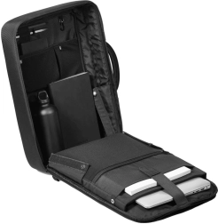 Le sac possède des poches pour la carte de transport ou des documents dans les bretelles, et le rembourrage ergonomique en mousse EVA offre un grand confort. Le compartiment principal s’ouvre à 180° et comprend un panneau d’organisation et des éléments réfléchissants pour une meilleure visibilité. Poche pour ordinateur portable jusqu’à 16" et pour tablette jusqu’à 12,9".