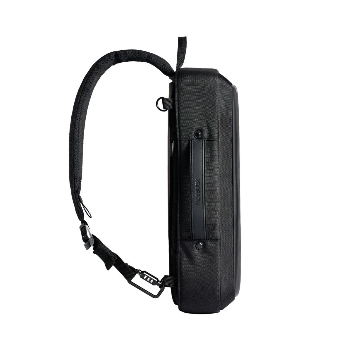 Il est équipé de fermetures éclair et de poches dissimulées pour se protéger contre le vol, ainsi que d’une construction résistante aux coupures et imperméable. Un cadenas en zinc intégré permet de l’attacher à tout objet fixe et un câble en acier dans la sangle assure une sécurité accrue.