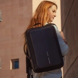 Profitez de la sécurité et du style avec notre sac à dos antivol Bobby Bizz 2.0 noir, offrant une double fonctionnalité : il peut être utilisé comme sac à dos ou comme mallette élégante. Ce produit utilise des matériaux recyclés ; 47 bouteilles en plastique sont nécessaires pour fabriquer un sac.