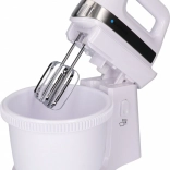 Il est livré avec des fouets pour pâtes légères, blancs d’œufs, crème et crèmes dessert, ainsi que des crochets pétrisseurs pour pâtes plus denses et pâtes sablées. Le mixeur est léger, tient bien en main et le bouton d’éjection des fouets facilite le nettoyage et le changement des accessoires.