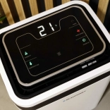 Grâce au panneau de commande intuitif sur le dessus, vous réglez facilement les modes souhaités. Le design moderne en blanc avec panneau noir s’intègre dans tout intérieur et les roulettes facilitent le déplacement entre les pièces.