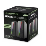 Les haut-parleurs USB LED Esperanza Nortec sont conçus pour ceux qui recherchent une expérience sonore de qualité et un style soigné. Avec le réglage de volume intégré et l’éclairage LED RAINBOW, ils offrent une valeur ajoutée à la fois esthétique et fonctionnelle. Compatibles avec tout ordinateur doté d’une sortie audio et d’un port USB.