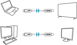Conçu pour connecter simplement un ordinateur/ordinateur portable avec DisplayPort à un écran HDMI. Le sens inverse (HDMI → DP) n’est pas pris en charge.