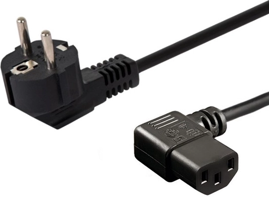 Câble d’alimentation hautement qualitatif et universel avec connecteurs coudés Schuko et IEC C13, idéal pour raccorder moniteurs, ordinateurs, imprimantes et projecteurs.