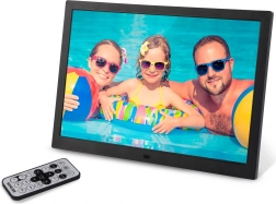 Cadre photo numérique stylé et moderne de 15 pouces, idéal pour afficher vos photos préférées en qualité HD.