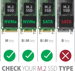 La conception sans vis en aluminium noir avec ventilation assure un refroidissement optimal et prolonge la durée de vie du disque. Il convient à toutes les tailles de SSD M.2 : 2242, 2260 et 2280 mm. Ce produit est un excellent choix pour ceux qui recherchent une solution de stockage et de transfert de données élégante et efficace.