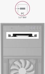 • Les dimensions du cadre et les trous de montage correspondent à un emplacement 3,5" standard dans un boîtier PC.