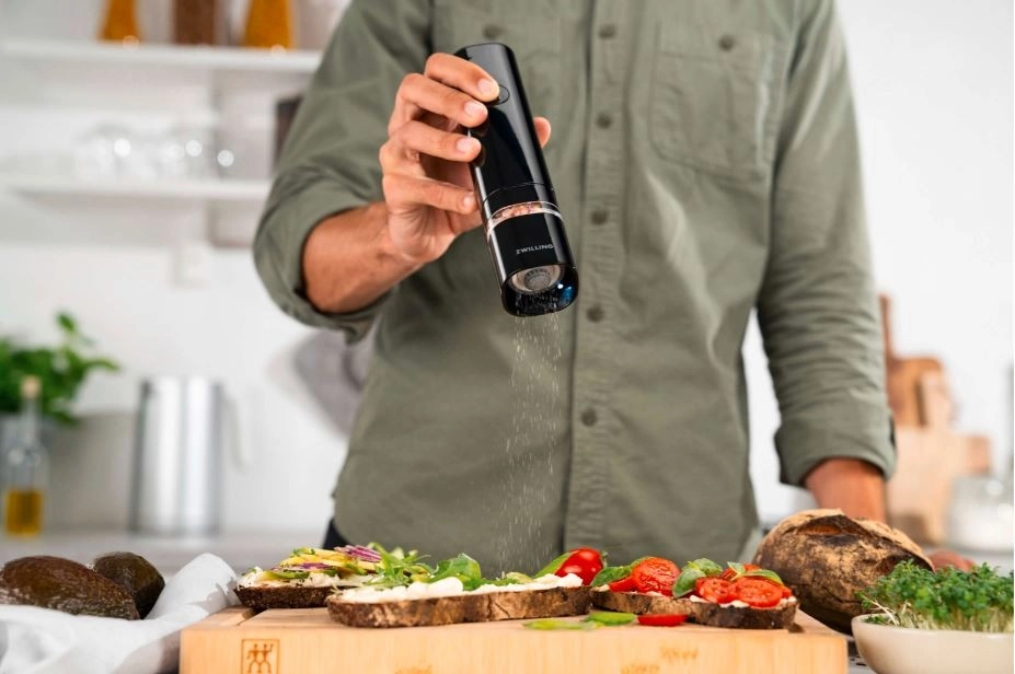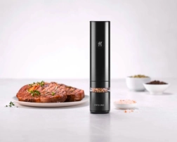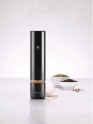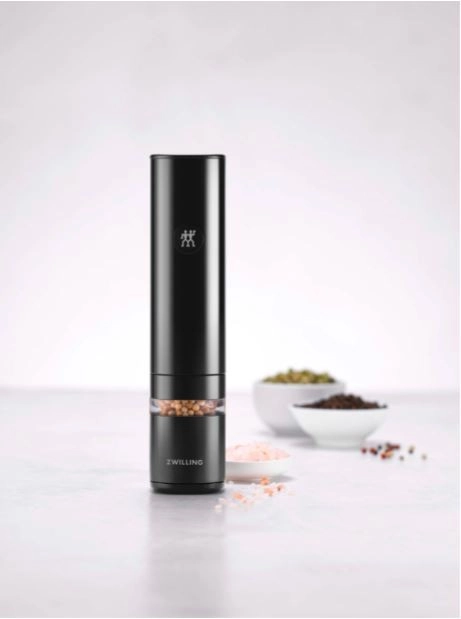 Élégant moulin électrique à épices ZWILLING ENFINIGY en finition noire, offrant une mouture rapide et uniforme du sel, du poivre et des mélanges d’épices. Des résultats précis grâce aux meules céramiques durables, au réglage en continu de la mouture, au moteur puissant et à la batterie Li‑Ion rechargeable. Un éclairage LED pratique et une fenêtre de visualisation facilitent l’assaisonnement et le contrôle des réserves.