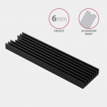Radiateur passif compact AXAGON pour SSD M.2 (22 × 80 mm) d’une hauteur de 6 mm assurant un refroidissement efficace et des performances stables sans bruit. Le corps à ailettes en aluminium et les pads thermiques réduisent la température jusqu’à 20 °C, prolongeant ainsi la durée de vie du disque et évitant le thermal throttling.