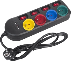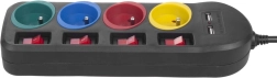 Chaque prise codée par couleur dispose de son propre interrupteur, permettant de contrôler l'alimentation des appareils et d'augmenter la sécurité.