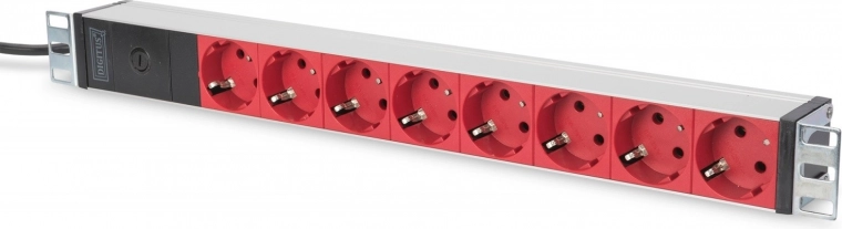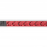 - 8× prise Schuko (CEE 7/3), finition rouge pour une identification rapide